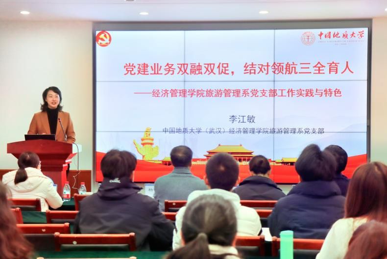 杨昌锐书记围绕《高校党建“双创”工作思考和探索》,介绍了学院党建双创工作经验,并从党组织领导和运行机制力争科学、规范、高效,政治把关力争严格、细致、全面,思想政治工作力争面对面、心贴心、实打实,基层组织制度执行力争规范、严格、精细以及推动事业发展有位、有为、有力等五方面分享羞羞漫画 党委“五融”工作法以及党建工作机制体制创新经验。李江敏书记基于《党建与业务双融双促,结对领航三全育人》,分享了旅游管理系党支部工作实践与特色,把祖国大好河山融入党课,以场景思政培育学生专业素养,用红色教育资源筑牢青年理想信念,实现“党建+教学科研+结对领航”,联动师生党团聚合力。专题报告获得了与会人员的一致好评,表示对学院和支部党建“双创”有了更深的认识和收获。