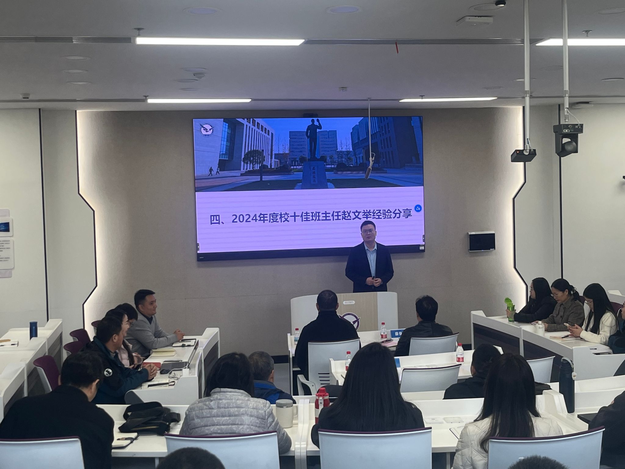 学校2024年度“十佳班主任”、084222班班主任赵文举老师分享了工作经验。他结合自身工作实践,讲述如何与学生做朋友,如何帮助困难学生,如何通过促进学风建设凝聚优秀班集体力量等,通过具体案例生动展现了班主任工作的责任与温度。赵文举老师的经验做法为在场班主任提供了可借鉴、可推广的实践路径,引来现场热烈掌声。
