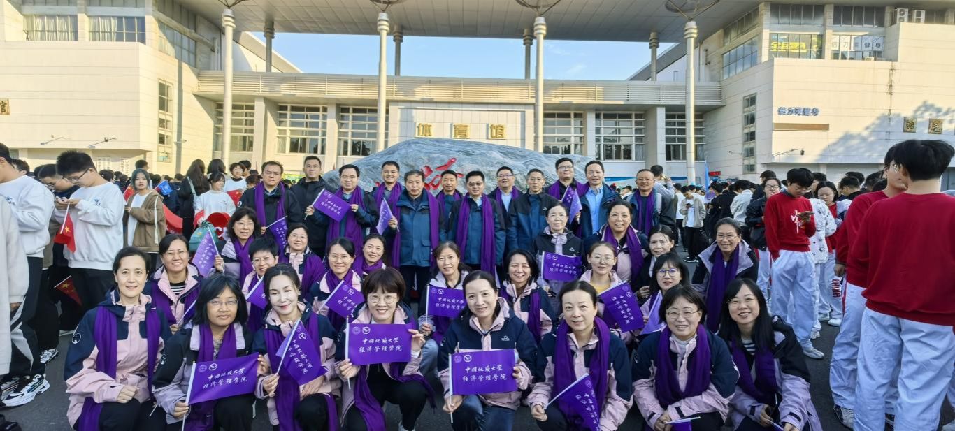 在校第一届健身气功八段锦比赛中荣获一等奖的经管师生们,在开幕式八段锦表演阵列的C位,向师生们展现了中华优秀传统武术文化的魅力。